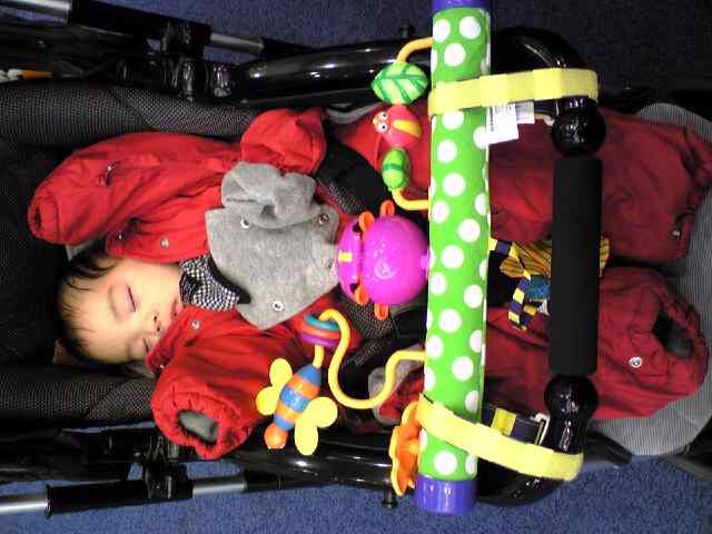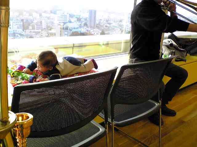 予想通りおっぱいの時間になったら騒ぎ始め、楽器吹くどころじゃない。