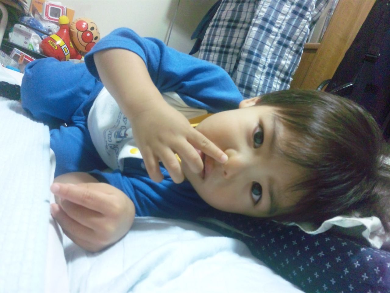 お迎えに行くと、ぐったりしてたのでまた発熱?!と思ったら、