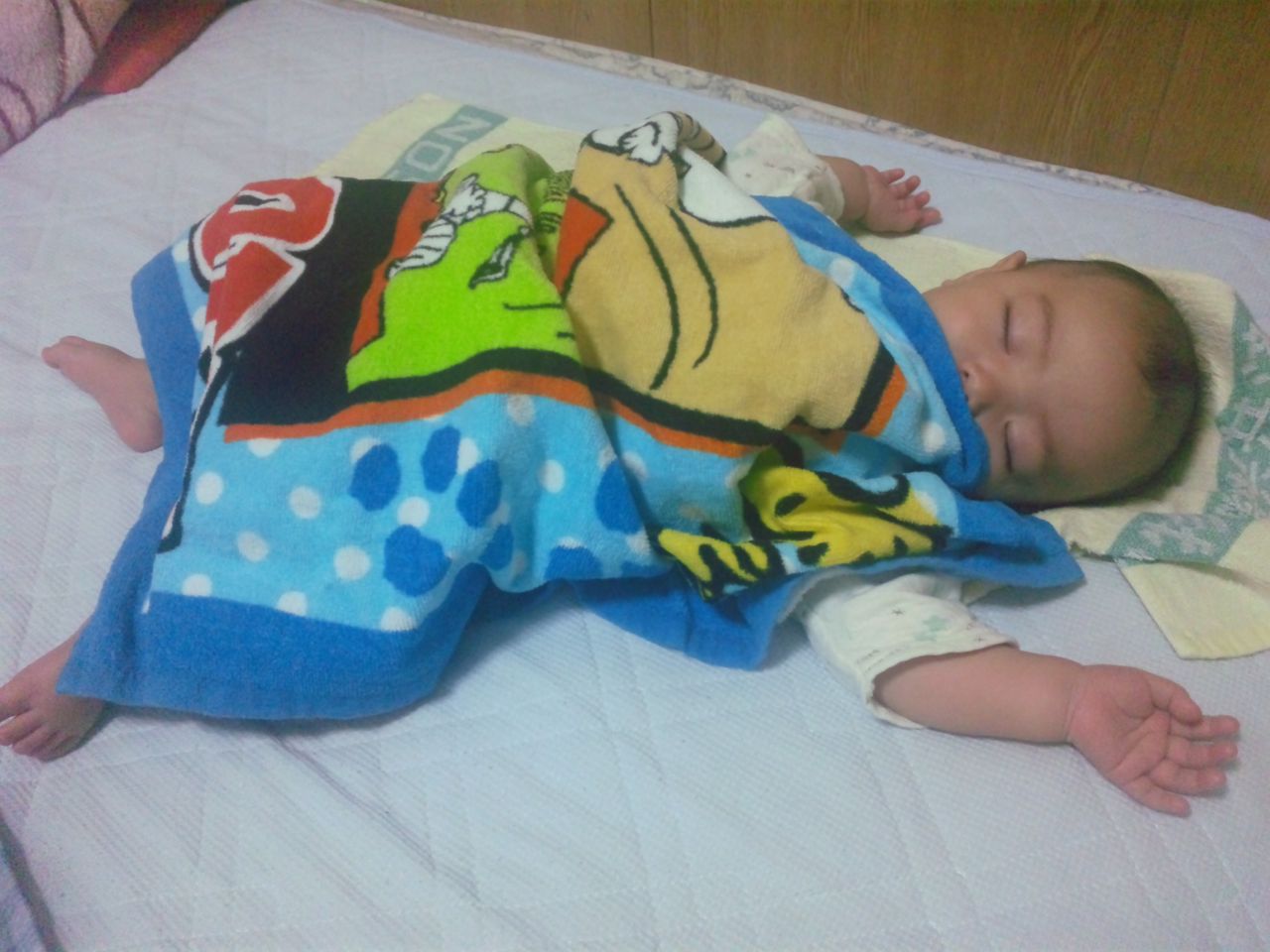しかし、4時頃、ことみたん授乳時にもちぃ太郎はばったんばったん寝返り。