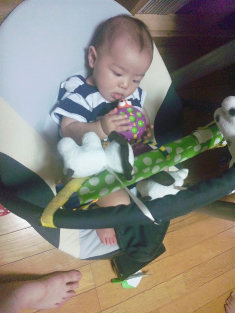 英語リトミックで歌われるthe wheels on the busや指遊びの動画をどこでどうやるのか探し当てて何度も再生して、低く唸りながら覚えようとしてる。(大人でも早口で歌いにくい)