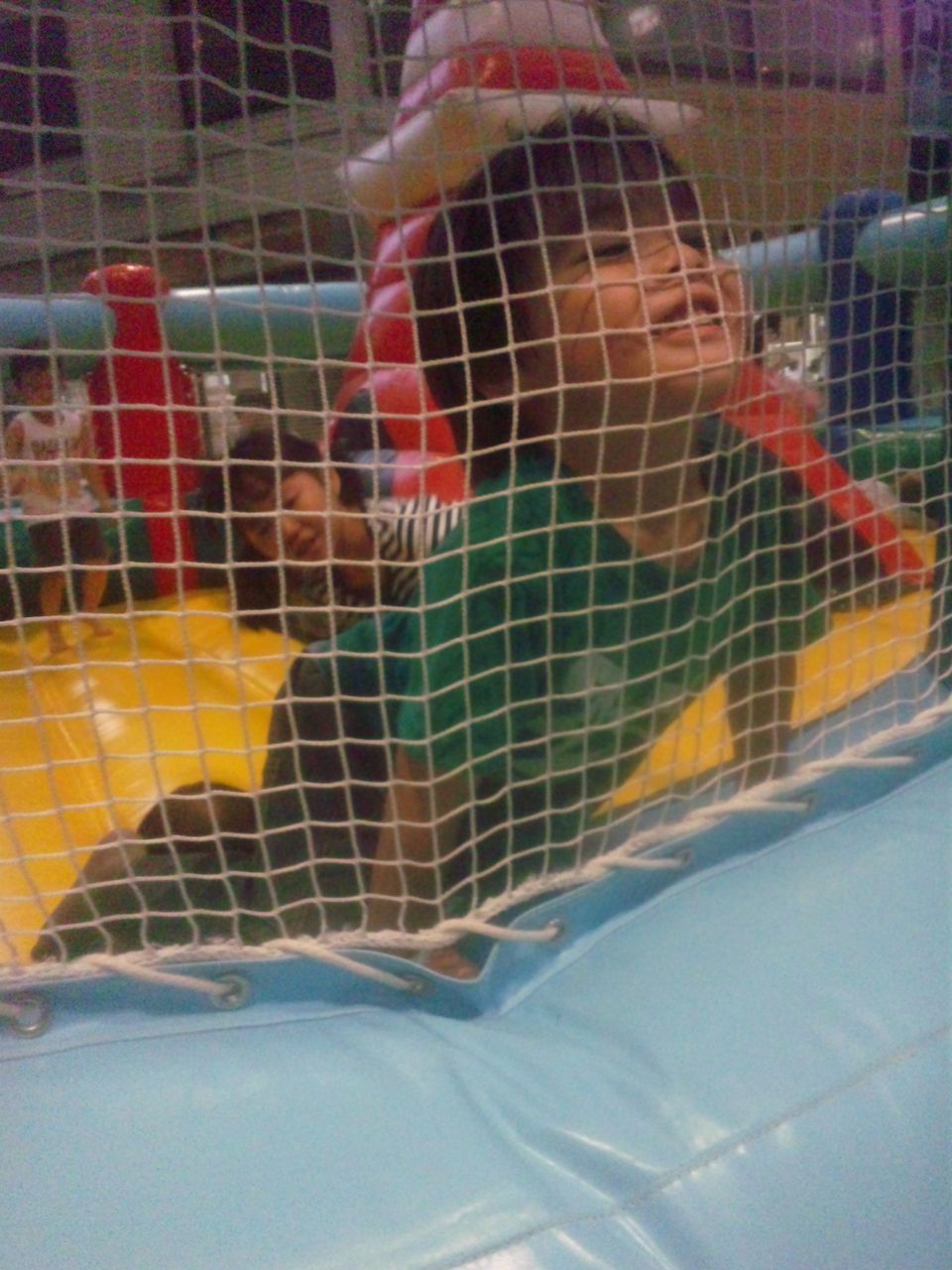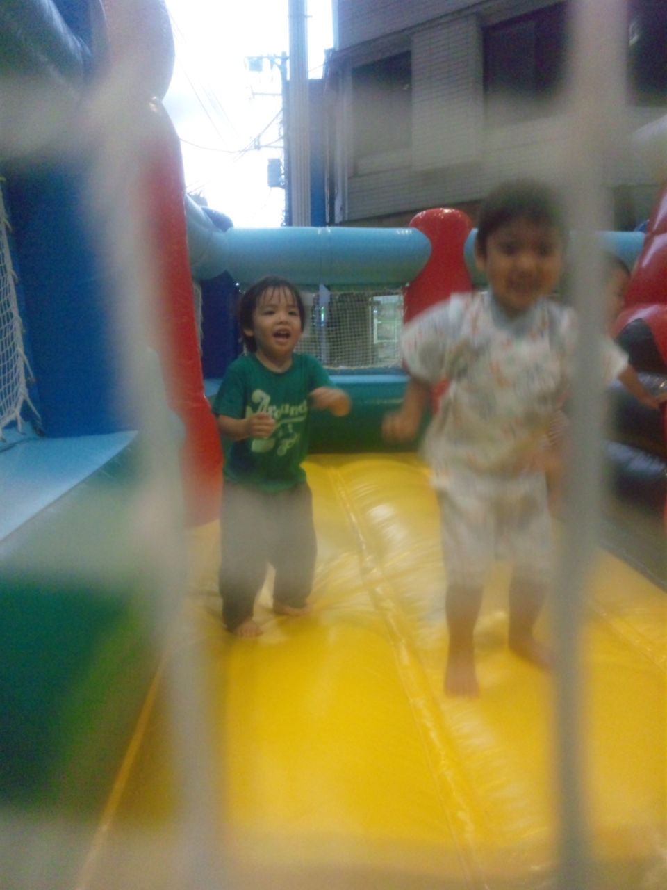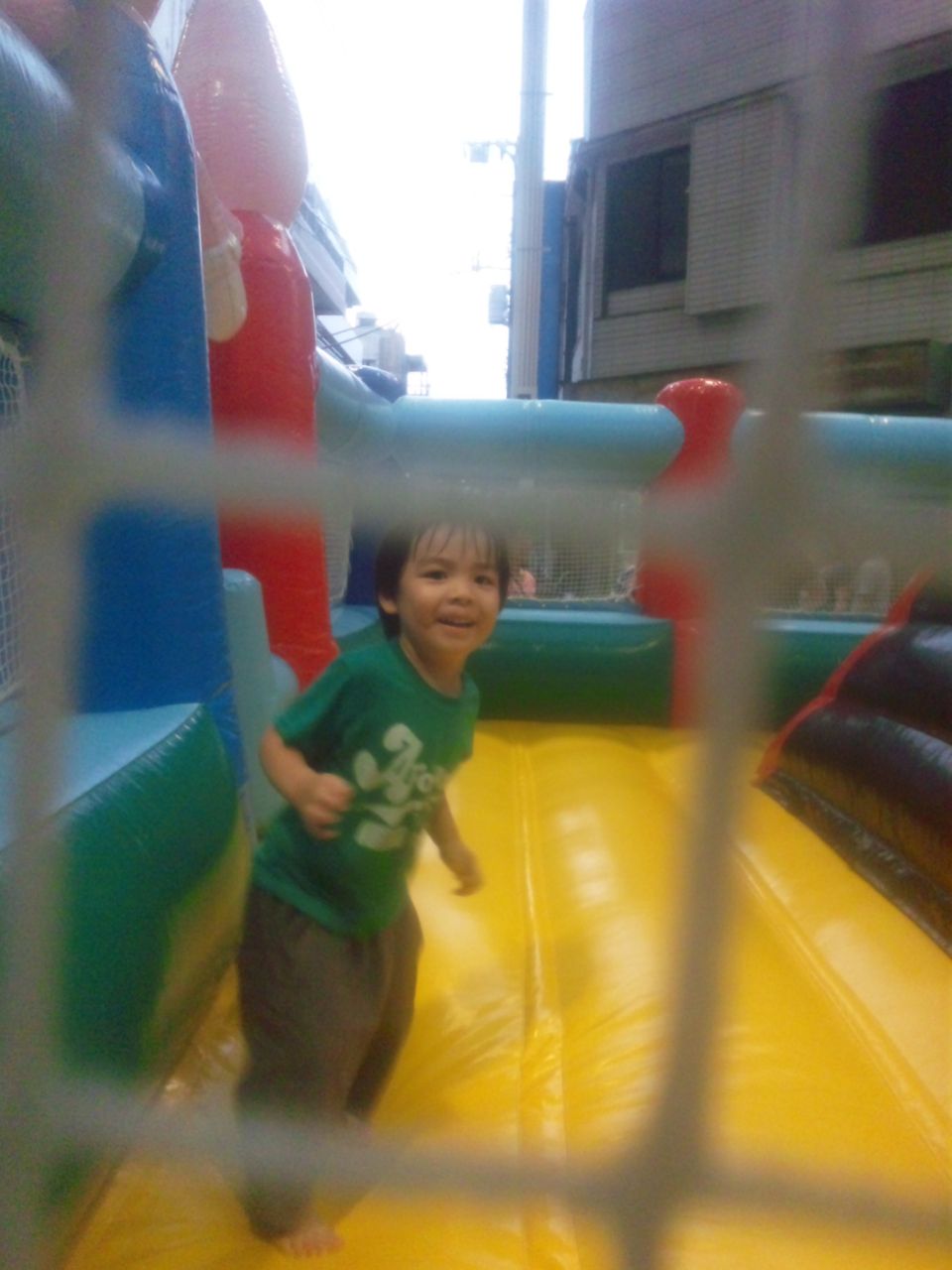 先ほどの夏まつりの会場をもう一度通ったら、トランポリンが目に入りちぃ太郎はしたそうだったので入場させたらフィーバーした。
