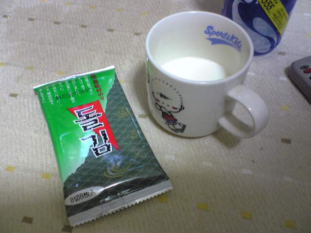 昼の段階で海藻と乳製品が足りなかったので、飲むヨーグルトと韓国ノリをおやつ用に買ってきて補填。