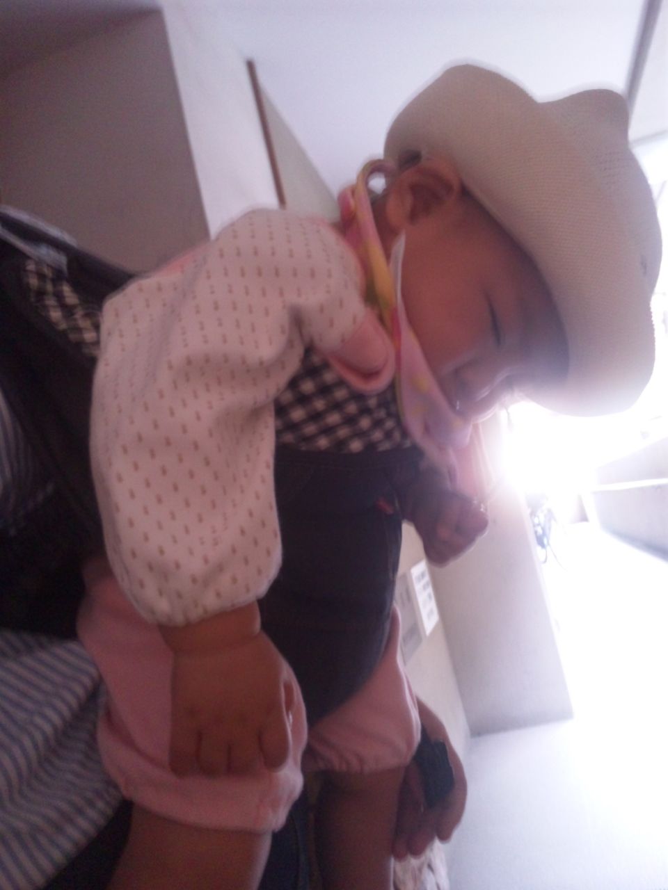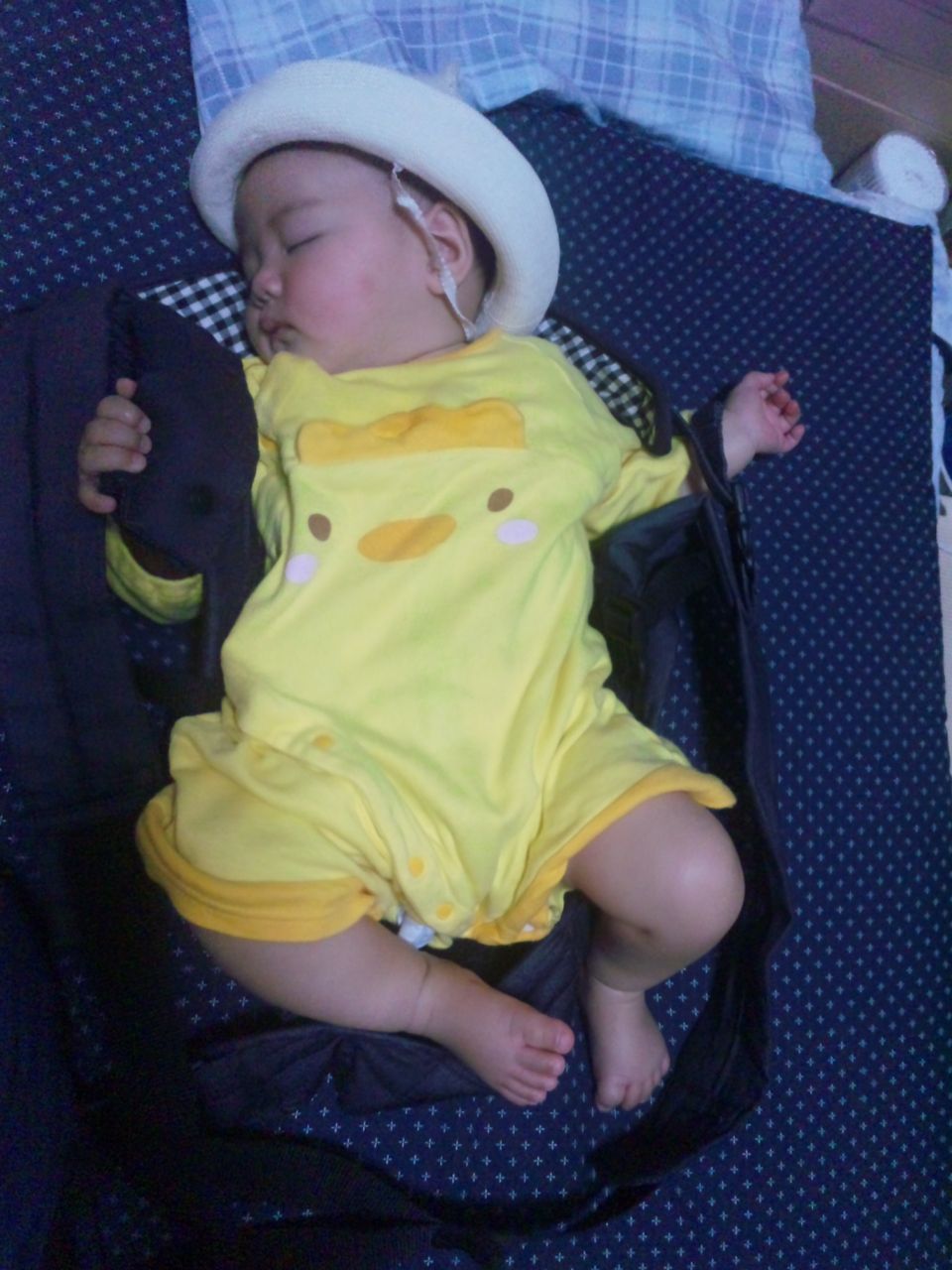 ファミサポの人に鼻水やらよだれやら擦り付けて抱かれておった。ファミサポはちぃ太郎の世話、ことみたんはオババという契約だったので、なんか申し訳ない。