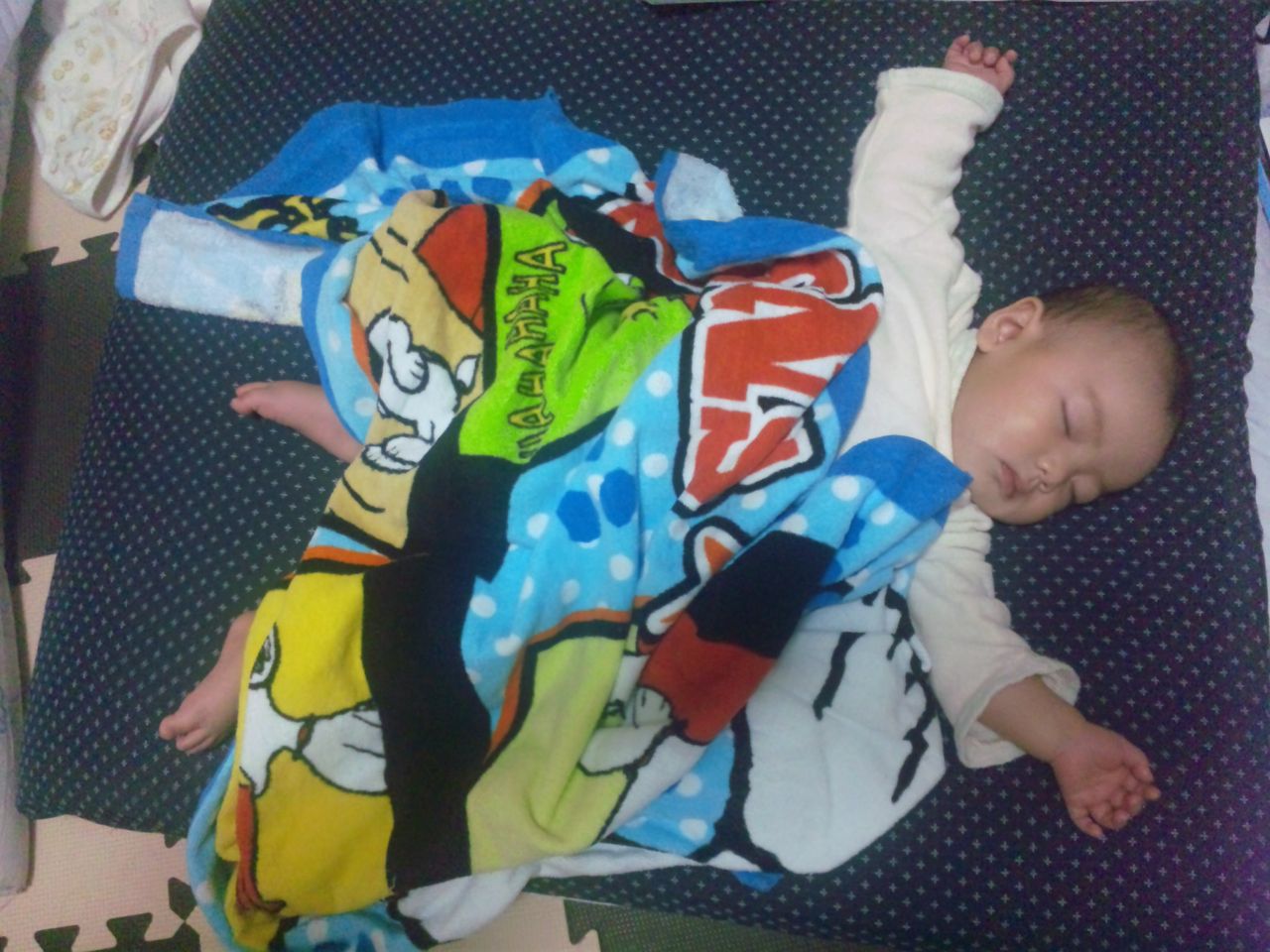 1時間後くらいに目を覚まして知育玩具でしばらく遊んだら、満足したみたいでまたすっと寝た。
